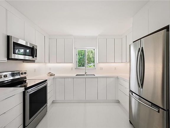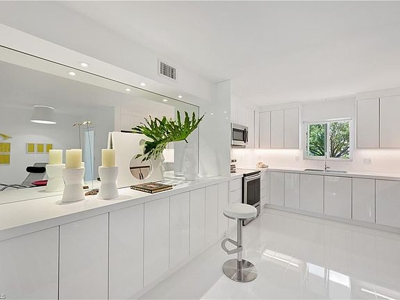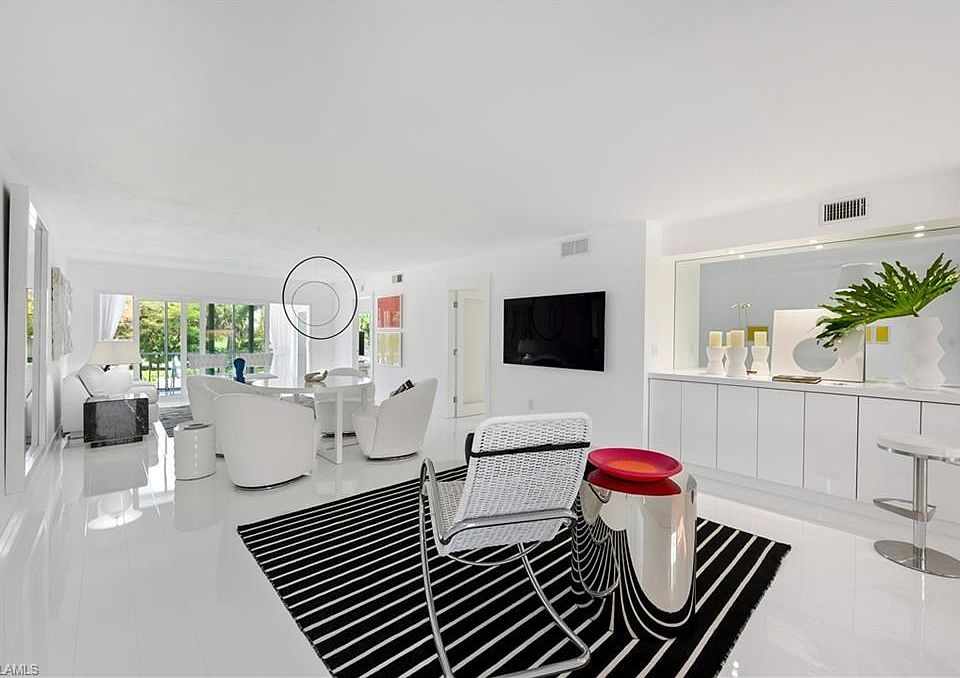 Recently renovated and redesigned with exquisite features and appointments, this sophisticated two bedroom, two bath apartment with functional floor plan is about indoor-outdoor living. All elements and details were completed with perfection. Aside from each room capturing sunlight throughout the day, the livability and outstanding architectural features invite a connection to the outdoor space. Glass doors from the living room and master suite open seamlessly to the screened patio overlooking the sparkling pool, lush landscape and LaPlaya golf course. It is important to note that the total renovation and reconfiguration of the space includes the following improvements and upgrades: New floors, walls, ceilings, lighting, customized closets and cabinetry, doors, frames, countertops, appliances, electric wiring, LED lights, HVAC, plumbing, bath fixtures, hot water heater, enclosed front and rear patios, hurricane-impact windows and doors. This apartment has a deeded carport parking space - conveniently located near the elevator. Within 3 miles of white sandy beaches, upscale shops, restaurants and performing arts, this residence is an oasis for year round and seasonal enjoyment.