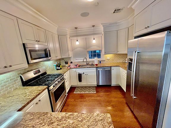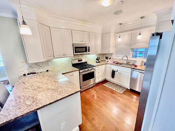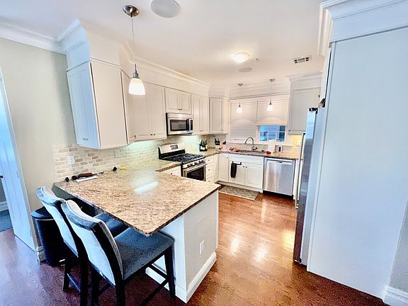 AVAILABLE NOW FULLY FURNISHED! Bright and sunny two bed, two bath, corner unit home with open floor plan great for entertaining and living. Newer construction (2014) boutique building (3 units) with one exclusive garage parking space. King-sized primary bedroom with ensuite bath and two closets. Second bedroom with adjacent deck sized for a queen bed or home office. Detailed design features include beautiful hardwood floors throughout and tiled bathrooms, granite/stainless kitchen with chef's gas range and self-closing drawers, crown molding, wireless surround sound with separate zones/controls in EVERY room, washer/dryer, tank-less on demand water heater, gas fireplace and plantation shutters throughout. Ideal central South Boston location, short distance to the Broadway T, all downtown Boston bus routes, 90/93 interstate highways, Lawn on D, the Seaport, and all nearby restaurants and retail. Lease end date 6/30/2023. Pets negotiable. Move-in costs are First, Security, and Broker's Fee. Inquire for walkthrough video and to schedule a viewing today! *Photos after garage photo after from previous listing* Tenants cover all utilities. Pet's negotiable. First, Security, and Broker's fee due for move-in costs.