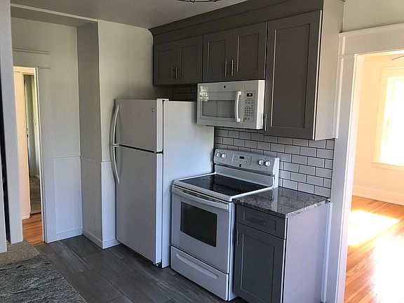 Classic 1920 2-family house with oversize separate 2-car garage. Maintenance-free vinyl siding. First floor unit could use some refreshing, although it's in good shape and will be freshly painted. Lovely hardwood floors (oak or maple throughout. Nice sunny living room and bedroom, smaller bedroom/office, large kitchen and full bath. Direct access to basement laundry, as well as a door to the small back deck and yard. Upper unit was beautifully renovated in November 2019, with a gorgeous new kitchen and bath. Kitchen has new cabinets, some with glass fronts, and room enough for a small table. Bath has dark-bronze hardware and all new fixtures and tiles. The living room and dining room have beautiful hardwood floors and gets lots of sun all day. Upstairs on the third floor are two spacious bedrooms with generous closets and plush carpet (also 2019. Large level yard with plenty of room for play, and a lovely cherry tree in the back. Quiet side street in an established neighborhood of similar homes, yet just a few blocks from Coram Avenue shops, restaurants and bars, and the wonderfully restored riverside park. Live in one and rent the other, or rent them both Excellent history of rental tenants.