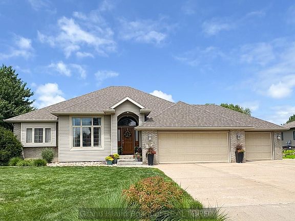 Spacious 4 bedroom, 4 bath home located in town, with an acreage “view” in the back! This 2,054 main fl sq foot home and 1,933 sq ft in the finished walk out basement is located in the lovely McBride subdivision with mature trees. You will enjoy the open living, dining and kitchen floor plan with main floor laundry. The primary bedroom has a door to the deck, double sinks, soaker tub, separate shower, and walk in closet. Downstairs is a huge family room, an office and bonus room besides the 4th bd and three quarter bath. You won't get tired of the open views in back and privacy the yard offers. There is an attached 3 car garage and UGS.