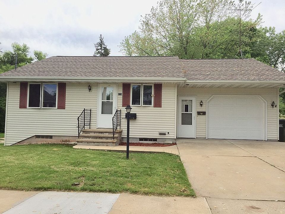 Ranch style home vinyl siding, cement driveway and patio natural gas furnace, central air gas fireplace first floor laundry