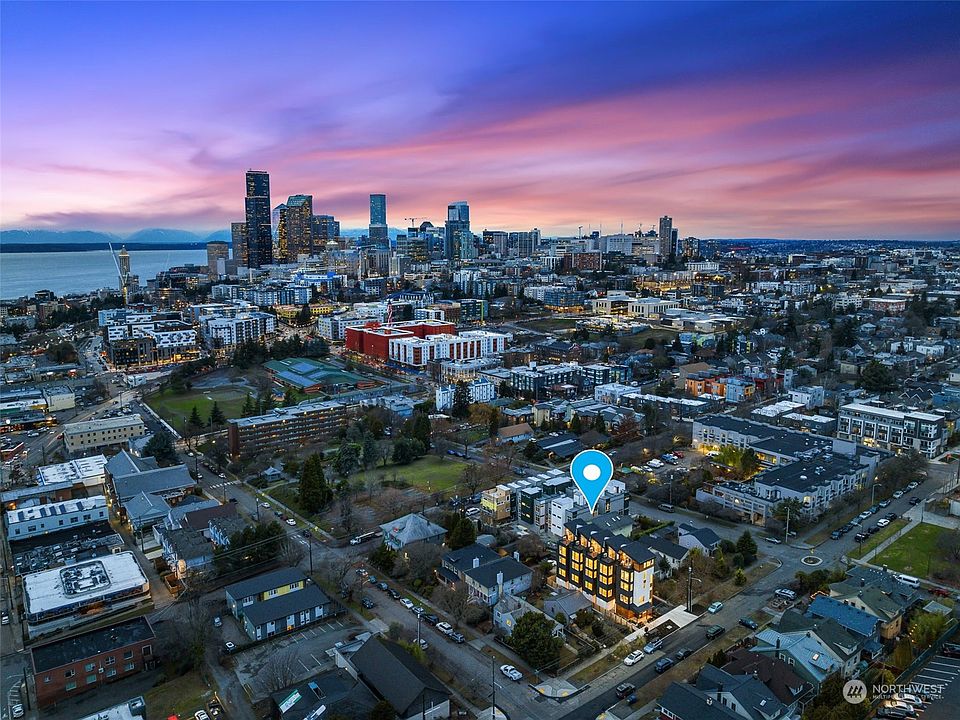 WHAT A VIEW! Blackwood Homes proudly present their most desirable view residence in their newest community in the Atlantic neighborhood. This one-of-a-kind home features an attached garage, a view main floor w/ deck, L-shaped kitchen, & luxe quartz countertops complementing a backdrop of natural tones & wood-lined surfaces. Upstairs, guests enjoy a private floor; the luxurious primary bedroom offers similar exclusivity but on a grander scale. This impressive home finishes w/ stunning mountain and city views as a backdrop to the bonus flex space connected to an expansive deck. You will not find a house with a view like this anywhere else in the city! Unique as can be, on a quiet residential street only minutes from downtown and Capitol Hill.