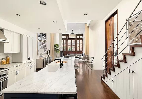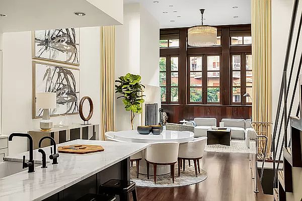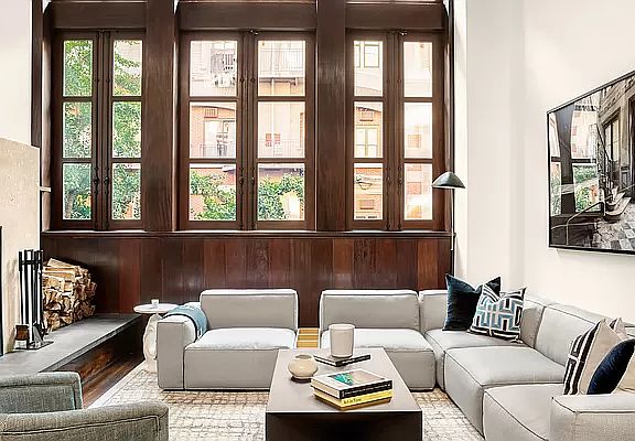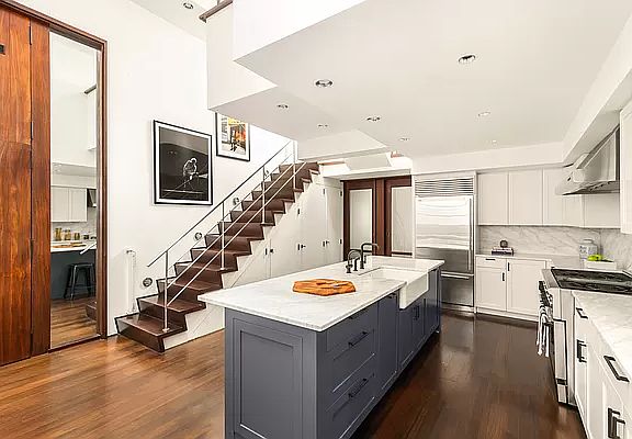 One of the most unique spaces offered in the downtown market today, the penthouse of 215 East 22nd Street is a rare opportunity to achieve townhouse-style living with all of the services of a condominium, at a fraction of the price point. Fully renovated and designed by Joseph D'Urso Architects, this two bedroom, two bathroom is ready for its lucky new owner. Located in a carriage house adjacent to a former brewery converted to condominiums, #PHN is one of only two apartments in the building. Climb one flight of stairs to be immediately wowed by one of the most unique rooms out there, a lofty space with twenty foot ceilings, a skylight, and huge windows. The kitchen is open and recently renovated, with new calacatta marble countertops and backsplash, custom cabinetry, and chef's appliances by SubZero, Thermador and Summit. The hood is vented to the outside, as is the washer/dryer, which is brand new and located under the stairs. The living space is enormous and lofty, has a wood-burning fireplace, and three oversized south-facing windows, in addition to a skylight, for light all day. Also on this lower level is a second bedroom and full, windowed bathroom. Upstairs in the duplex is the primary suite, with an open-to-the-below home office that overlooks the beautiful living area. Also on the upper level is a renovated primary bath with heated floors, a two-person steam shower, and a large primary closet. The apartment is a part of the Gramercy Park Habitat condominium, which has a full time doorman/concierge, bicycle room, common storage, and parking garage. The owners of #PHN get full access to the amenities of the Habitat.