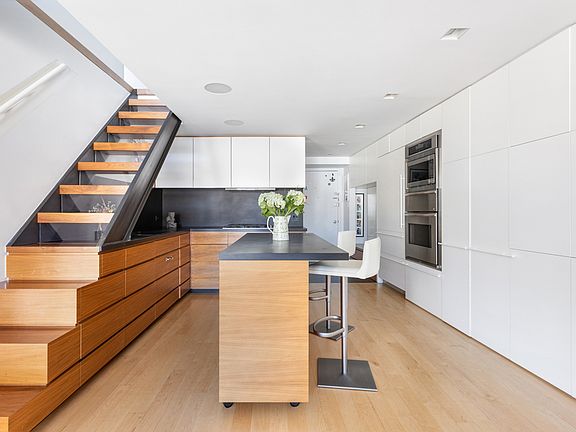 What is more spectacular than a 225 sq foot terrace? How about one with a view of the skyline! This well proportioned duplex is laid out with the comforts of home in mind AND all the glam of a sophisticated city life. Upon entering, there is excellent closet space, a full size washer dryer, and a sleek powder room. Proceed to the enviable kitchen with Miele range, hood and diswasher, Sub Zero refrigerator, and Thermador wall oven, microwave and warming drawer. Thoughtful storage in every possible place! There are stunning maple floors and silent yet efficient AC units thorughout the home. The living/dining area lends itself perfectly to comfortable entertaining with a Juliet balcony and Chrysler Building view. There is sleek wall storage including a very James Bond-style hidden television and top of the line speaker system. The main floor master suite feels like a European hotel room with its open feel. Ascend to the second level for two more bedrooms, another full bath, and behold the terrace. It's a gift to able to step outside and see the world while maintaining complete privacy. Need more outdoor space? Take one flight up to the building's common roof deck. Penny Lane is in my ears and in my eyes... and is anything but cookie-cutter. You will feel that from the moment you step in the lobby. Full-time doorman, super, and staff tend to all your needs. There is a garage on-site for ultimate convenience and of course, the aforementioned roof deck. Sorry, no dogs allowed.