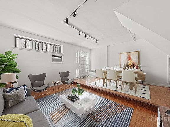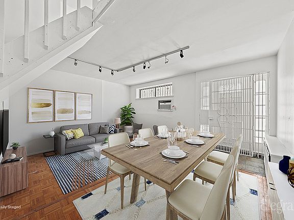 The bottom level/living room features 9ft ceilings and a maisonette door on the lower level allows for direct access outside onto the hustling and bustling New York City streets where you can enjoy a short walk to a host of restaurants, cafes, bars, shops, supermarkets, local parks, Union Square, 6/R/W trains and F/M/L/Q/N/4/5 links.