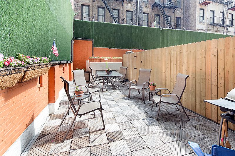 Unique is this garden duplex apartment with 2 split bedrooms and private outdoor space in a full service building... luxury living! The apartment features, one and one half bathrooms both tastefully renovated with granite tops, floor to ceiling Italian ceramic tiles and a soaking tub. The duplex creates an open feeling with its high ceilings and oak staircase that lead to the well sized living room and floor to ceiling sliding door to the patio. The kitchen is renovated with granite counter tops, custom cabinetry, top line appliances and open to the dining area. The apartment is cooled by Daikin HVAC units on both levels making cooling quiet and efficient. The building once home of the J.M. Horton Ice Cream Factory in the 1920s. Present day Penny Lane is known for its lobby, designed to resemble the famous Street in Liverpool, England. The building has an impressive 10,000 square foot planted roof deck with views of the Empire State Building, Chrysler and One World Trade Center, two laundry rooms per floor, bike storage, garage and one of the largest recycling centers in a NYC cooperative. Cats are permitted. This all situated close to Madison Square Park, The Flatiron, Gramercy Park, subways and two of the top ten restaurants in Manhattan (Gramercy Tavern and Eleven Madison), make this an ideal location.