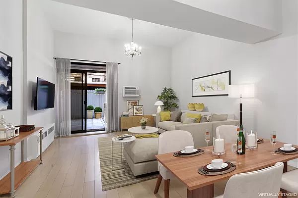 This cavernous loft-like interior space with a spectacular outdoor terrace is a must see. This 950 sq. ft. one-bedroom triplex with soaring 18' ceilings features a private 416 sq. ft. terrace, home-office (possible 2nd bedroom) plus a sleeping-loft. When you enter this mezzanine level apartment your eyes are drawn up to the sky-high ceilings in the living room and outside to the terrace. The expansive living room can easily accommodate a separate dining area and has convenient slider access to the fabulous terrace. The king-sized bedroom has 18' high ceilings, an extra large customized ELFA closet and a sliding door out to the terrace. Both living room and bedroom are extraordinarily spacious and have their own through-wall air conditioners. The eat-in kitchen is equipped with stainless steel appliances, granite counter-tops and plenty of space for a four-top table. The home office overlooks the living room, has two closets and additional built-in storage. The sleeping loft is that perfect "bonus" space for sleeping, a playroom or for additional storage. This is not your cookie-cutter apartment. The apartment has been professionally painted, cleaned and is move-in ready. Building features include 24/7 doorman, laundry on every floor, live-in super, rooftop deck, onsite garage (special monthly rates for shareholders), bike storage area and additional storage is available for a fee. Pet policy is CATS ONLY and subletting is permitted. The Penny Lane Cooperative, formerly the J.M. Horton Ice Cream Factory in the 1920's, is conveniently located between 2nd & 3rd Avenue, only a half block away from the uptown 3rd Avenue bus, downtown 2nd Avenue bus, crosstown bus at 23rd Street and just a two-block walk to the 6-train at Park Avenue South. 3rd Avenue offers a plethora of fantastic restaurants and cuisine options to choose from and Madison Square Park is just a stone's throw away.