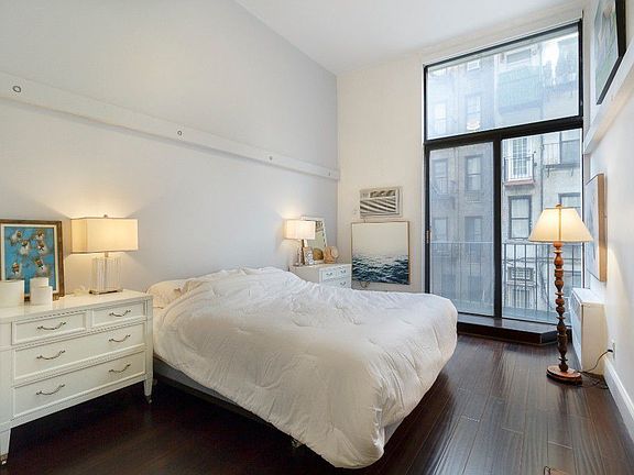 Amazing duplex 1 bedroom with a bonus loft space. 1.5 bathrooms with excessive 12'9 ceilings and expansive floor to ceiling windows that look out over Juliet balconies in two separate rooms. The 5'7'' loft is ideal for an office or guest area, including its own half bath and walk in closet. The super-sized U-shaped kitchen makes the unit perfect for entertaining. In addition, the apartment is equipped with motorized blinds and ample storage space. This apartment is in the full service Penny Lane, a converted ice cream factory! The lobby was designed to resemble a London street and is a well known NYC historical building. Penny lane is a full service including a roof deck, storage, bike room and laundry on every floor. Cat and pied-a-terre friendly. All dimensions and square footage are estimates.