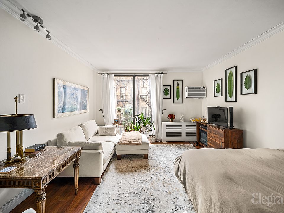 Located in the charming Penny Lane, a historic full-service building in Kips Bay/Gramercy, this stylish studio offers a perfect blend of comfort and elegance. Thoughtfully designed, the home features a spacious layout with ample room for both relaxation and functionality. The beautifully appointed kitchen boasts high-end stainless steel appliances, a dishwasher, a built-in microwave, granite countertops, and custom cabinetry. There is also space for an island with barstools or a cozy dining nook, adding versatility to the design. The main living area is both inviting and flexible, easily accommodating a queen-sized bed, a full-sized sofa, a desk, and additional furnishings to suit your needs. Glass sliding doors flood the space with natural light and open onto a north-facing Juliette balcony, creating a serene and airy atmosphere. The recently renovated bathroom showcases impeccable design and modern finishes, offering a spa-like retreat. Penny Lane provides a wealth of amenities, including a 24-hour doorman, a live-in superintendent, a beautifully landscaped courtyard, a bike room, storage facilities, laundry on every floor, and an on-site parking garage. Residents also enjoy one of the largest and most breathtaking roof decks in the neighborhood, perfect for unwinding while taking in stunning city views. This is a co-op building which will require a co-op board application and additional fees. Time line for approval from the board is two to five weeks.