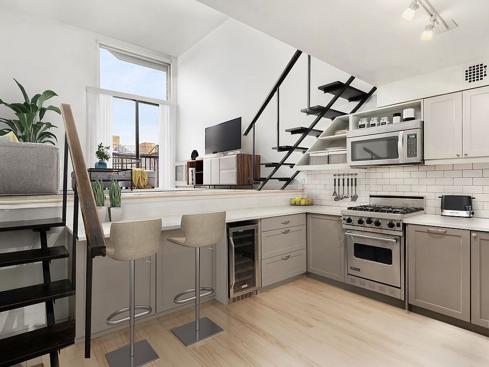 An Entertainer's Dream! Step into this unique bright 1 bedroom, 1 bath apartment with soaring 16ft ceilings - ideal for entertaining, and experience immediate views of the Chrysler & Empire State building from your private Juliette balcony. The northern exposure faces an interior courtyard and allows for privacy and quiet, while the 16ft ceilings and full height lofted bedroom has ample space for king bed and a wall of closets! 24hr doorman with porters and live-in super Close proximity to transportation, including 6 trains, restaurants, nightlife Large, landscaped roof deck with striking 270 degree views including Empire State & Chrysler Buildings 2 washers & dryers on each floor (new machines as of 2018) On-site garage Storage room in basement with units for rent Garbage chute on each floor Eco-friendly recycling room with composting program Tennis courts