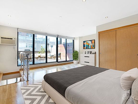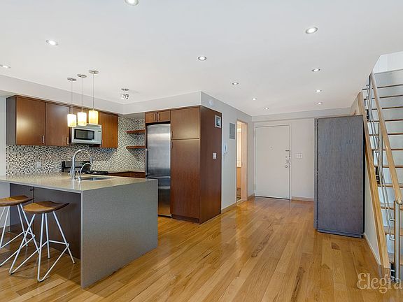 This spacious duplex one-bedroom apartment with an expansive south facing private terrace is now available, and you don't need board approval to make it yours! Recently renovated, this home boasts stunning hardwood floors throughout, high ceilings, and a duplex layout. With abundant storage space provided by multiple double closets and a balcony, this residence offers both style and practicality.