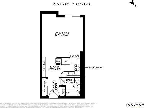 This 436 square foot apartment home has 0 bedrooms and 1.0 bathrooms. This home is located at 215 E 24th St APT 712A, New York, NY 10010.