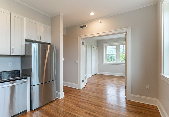 Second floor unit available for lease starting anytime between now and 11/1. The Commodore is a brand new historic renovation on E Chestnut Street in North Asheville. Second floor, 1 bedroom, 1 bathroom apartment with downtown views. Apartment features hardwood floors, stainless steel appliances, granite counters and backsplash, in-unit laundry, high efficiency heating and air conditioning and restored historic features. Building features a roof deck with downtown and mountain views, elevator, bike storage and video intercom. Off-street parking and secure storage available. Pet friendly building with a one pet limit and breed/size restrictions. Tenant responsible for all utilities, including sub-metered water/sewer. The Commodore is half a block to the shops and restaurants on Charlotte Street, three blocks to Trader Joe s, Whole Foods and Harris Teeter and 0.7 miles to downtown. *3D Tour is of similar apartment