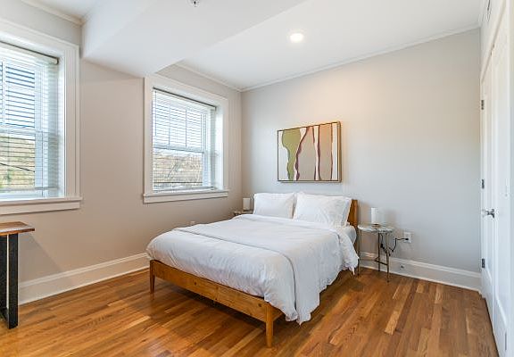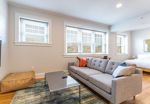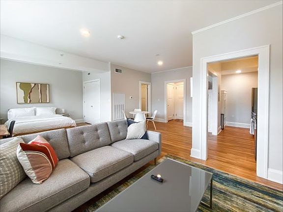 Available furnished with flexible lease term for a minimum of 1 month. The Commodore is a brand new historic renovation on E Chestnut Street in North Asheville. Situated just half a block to the shops and restaurants on Charlotte Street, three blocks to Trader Joe s, Whole Foods and Harris Teeter and 0.7 miles to downtown. This 3rd floor studio apartment features an amazingly functional and open layout, hardwood floors, stainless steel appliances, granite counters and backsplash, in-unit laundry, great closet space, high efficiency heating and air conditioning and restored historic features. Building features a roof deck with downtown and mountain views, elevator, bike storage and video intercom. Off street parking and additional secure storage are available. One pet is welcome with a small fee subject to breed and size restrictions. Everything you need is included with this well-appointed furnished rental; simply bring your personal belongings and move right in. High quality couch, 55 smart TV, solid wood bed with a luxurious mattress, desk/chair for those that need a home office, 4-seat round dining table, and a fully stocked kitchen. Linens are provided and included in the rent. All utilities, including wireless internet are also included.