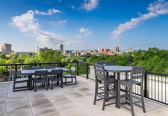 Flexible lease lengths available! The Commodore is a brand new historic renovation on E Chestnut Street in North Asheville. Fourth floor, studio, 1 bathroom apartment with Westerly views. Apartment features hardwood floors, stainless steel appliances, granite counters and backsplash, in-unit laundry, high efficiency heating and air conditioning and restored historic features. Building features a roof deck with downtown and mountain views, elevator, bike storage and video intercom. Off-street parking and secure storage available. Pet friendly building with a one pet limit and breed/size restrictions. Tenant responsible for all utilities, including sub-metered water/sewer. The Commodore is half a block to the shops and restaurants on Charlotte Street, three blocks to Trader Joe s, Whole Foods and Harris Teeter and 0.7 miles to downtown. *3D Tour of similar unit
