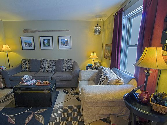 In town condo 2bedrooms/ 1bath.2nd floor. This is one of the least expensive 2 bedrooms in all of town.(currently there are less than 10 two bedrooms listed under 600k, and only 3 listed under $450,000)Modern bathroom remodel and newer stone countertops and more upgrades.Parking is shared. There are 2.5 spacesLarge private locked storage unit in garage.Small HOA so things can get done!