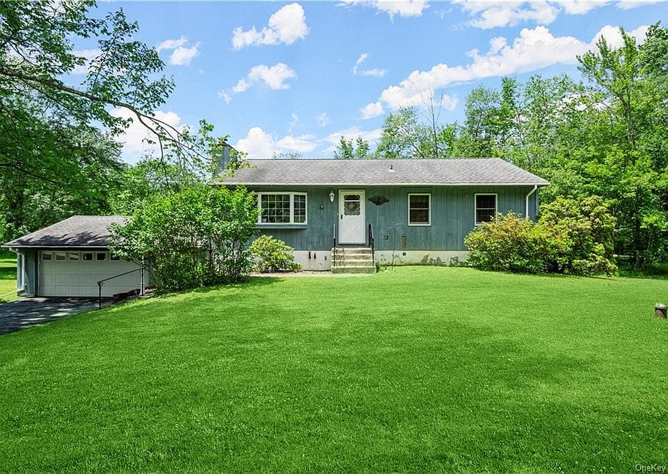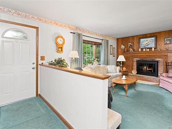 Welcome home to 215 E End Rd. located in the Hillside Lake community of Wappingers Falls. This cozy ranch-style home features three bedrooms, one full bath, a tastefully updated eat-in kitchen, and a spacious living room with a working fireplace, a hand-crafted mantle, a large bay window that allows natural light into the room, and hardwood floors underneath the carpet. A door off the kitchen takes you to a very large deck suitable for all your outdoor entertaining needs. The third bedroom is currently being used as a formal dining room. The lower level offers additional space with a laundry room and plenty of storage, and a very large workshop and mechanicals. Just off the workshop is a walkout to a large three-car attached garage. Updates include Septic system 2018, Oil Tank 2016, Water Softener 2016, and Oil Burner 2017. STAR rebate $1,391. Enjoy lake rights to Hillside Lake, the property is minutes to the Taconic State Parkway, shops, parks, and schools!