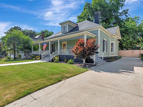 This charming home located on East Franklin Street is in the heart of downtown Anderson and has many updated features to offer. The front of this home is well manicured and has a concrete walkway from the side walk to the steps of the front porch. The front porch extends the entirety of the home. This home has an extremely large private backyard that is perfect for entertaining. You will find an additional parking area in the rear of the home, and a seperate large concrete area in the back offering privacy and shade trees. This area would be perfect for outdoor string lighting, hot tub, or outdoor grilling area. Inside you will find an inviting foyer with beautiful hardwood flooring that leads into the living area, dining, and the updated kitchen. The kitchen has newer tile flooring, cabinets, countertops, and appliances. There are two oversized bedrooms and each has it's own private bathroom. The master suite has french doors leading to the back deck, and the kitchen area has access too. Perfect place for morning coffee! The oversized windows allow natural light throughout the home. The main living area has wood ceilings and rock fireplace. Recent updates includes a dehumidifier system installed in the freshly cleaned crawl space. The front area was enclosed and encapsulated. HVAC control boards were replaced, serviced , and new coils installed. A 18ft beam was replaced along the rear of the home and french doors added. Extensive landscaping, trimming, and new wooden gates were added to the side yard. Most plumbing, closet shelving, and fixtures have been updated.