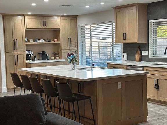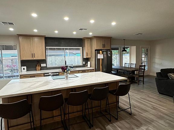 Gorgeous, fully renovated home features custom cabinets in the kitchen, quartz counters w/ backsplash, stainless steel appliances, wood look tile throughout and vinyl in the bedroom, ungraded hall bathroom with tub surround custom vanity and backsplash, upgraded master bathroom with custom shower surround and upgraded vanities. Backyard feature pool w/ spa area and turf. Come see it today.