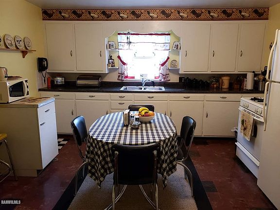 Cozy 3 bedroom home features eat in kitchen, bright and sunny living room, 2 bedrooms and bath on the main floor.14 X 8 cement patio off living room. Beautiful wood floors refinished in 2009. Finished walk up attic 3rd bedroom could be office area, family room, hobby room. Partially finished basement. New roof and wood fence 2014. 2 car detached garage. Move in condition. Walking distance to downtown Mt. Carroll Historic District. Home is adjacent to and high above the Waukarusa River. Perfect full time or get-a-way.