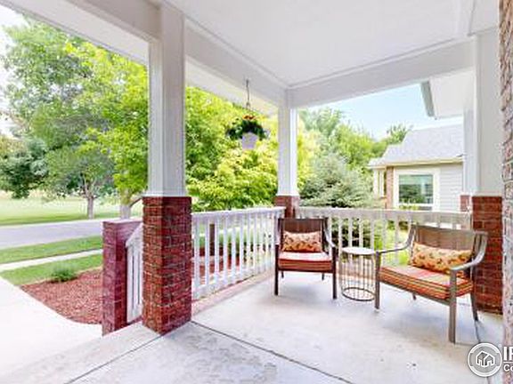 Rare opportunity to make your home in Berthoud's Mary's Farm. Immaculate all-brick 2-story with spacious front porch facing Pioneer Park. 9' ceilings. The home is light and bright with many windows. The interior has been totally repainted, the front porch and railing are newly painted as well. There are new Silestone countertops and backsplash in the kitchen, hardwood floors throughout the main level and in the upstairs bedrooms. A special feature of the home is a "sunny" sunroom off the kitchen overlooking the backyard which could be used as an office or playroom or just a nice sitting area to relax. The gas hot water heater is 1 year old, and the furnace and HVAC were new in October 2023. The home features a beautifully landscaped backyard with a spacious deck, perfect for outdoor gatherings. The front yard has been professionally landscaped by AquaScapes Landscaping. The detached oversize 2-car garage provides ample storage and convenience and features a built-in workbench and 2 walk doors. There is a nice-sized shed that provides extra storage. This property is part of a vibrant community that enjoys access to well-maintained parks, scenic walking trails, and a friendly neighborhood atmosphere. Berthoud provides a peaceful small-town feel with easy access to larger metropolitan areas. You're just a short drive from Loveland and Fort Collins, with Denver also easily accessible for a city escape. NO HOA OR METRO DISTRICT.