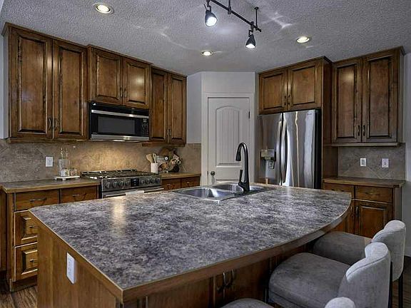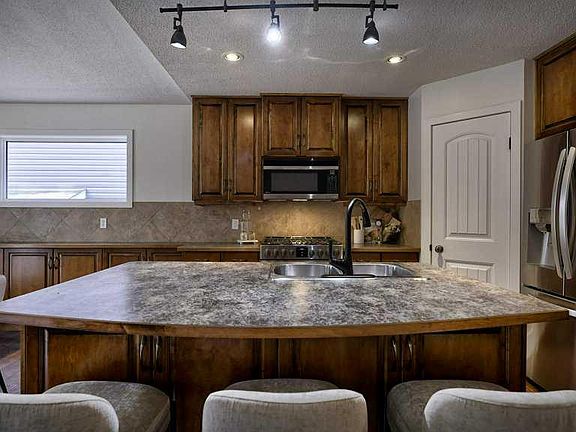 Welcome to this stunning five-bedroom, three-and-a-half-bath home in the highly sought-after community of Panorama Hills. The unique main-floor primary suite is perfect for those seeking single-level living, enhanced mobility, or added privacy away from the kids. The spacious king-size suite features a four-piece ensuite and a walk-in closet. The open-concept main living area features a large kitchen island with extra storage and a pantry, open to the dining area and living room with a cozy three-sided fireplace — ideal for entertaining or family gatherings. Enjoy the convenience of a main-floor laundry room with sink, along with thoughtful upgrades throughout — brushed bronze fixtures, designer lighting, central air conditioning, and on-demand hot water. French doors open to a large west-facing backyard with a two-tier deck, gazebo, and storage shed, backing directly onto peaceful green space — perfect for relaxing evenings or entertaining guests. Upstairs, you’ll find a massive bonus room, two oversized bedrooms, and a four-piece bath. The home features no carpet throughout, offering a clean, modern look and easy maintenance. The fully finished lower level includes a generous family room, two large bedrooms, flex room, and four-piece bath. Enjoy a large dedicated storage room along with a roomy utility area offering ample extra storage for seasonal items and household essentials. Recent Upgrades: Brand new roof, soffits, and siding (2025); newer patio doors; both upstairs bedroom windows replaced; new furnace and on-demand hot water tank (2023); new basement flooring; upgraded bathroom fans; new spring on garage door; and all new exterior light fixtures. Fantastic location on a quiet street—just a short walk to both the elementary and junior high schools, with a park and playground only steps away. The west-facing backyard backs directly onto a tranquil greenspace with a walking path, offering privacy and beautiful sunsets. This is truly the home you’ll want to call your own. OPEN HOUSE SUNDAY NOV 16th 1-3 pm.