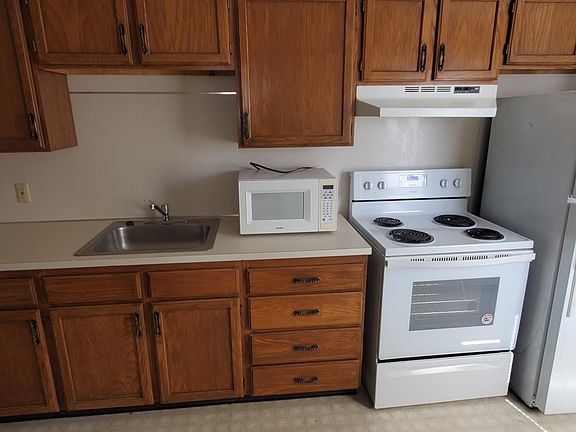 SMALL one bedroom second floor apartment. Galley kitchen with full size stove and refrigerator. Large bathroom. Vinyl floors in living room and bedroom. Located above two businesses, only one other tenant in building. NO PETS! No smoking, no section 8. Tenant pays all utilities - UGI gas heat, electric, water/sewer, and trash pick-up. Tenant is assigned one parking space in parking lot behind building. $35 application fee. No laundry facilities on site.
