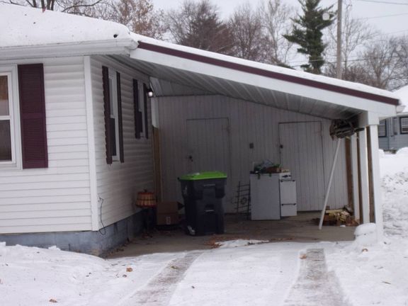 This ranch home in a residential neighboborhood includes 2 bedrooms, large utility room with washer/dryer hookups and closet, remodeled living room, eat in kitchen with refrigerator and cook stove staying, full bath, and furnace area. The exterior includes a vinyl sided home, with metal roof, detached carport with storage shed and fenced back yard. There is a light on property paid for on city bill. City of Roodhouse bill includes water, gas, electric, and trash. The moroccan sconces, washer, dryer, and kitchen pot rack do not stay. Lot is 60' x 140' with exclusion of 10' x 45' on NW corner of lot 10.