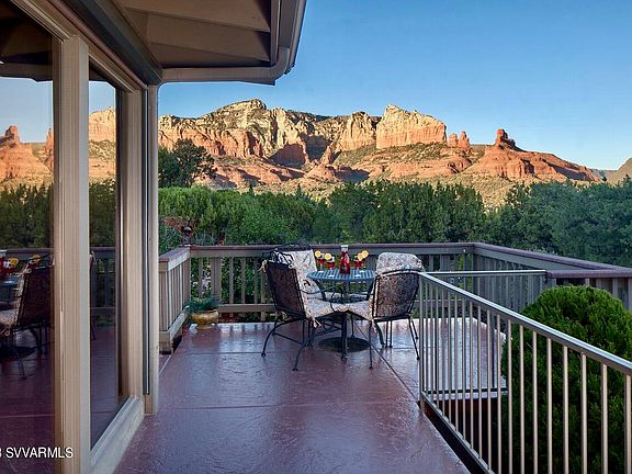 Designed to capture Sedona's rarest red rock views, this elegant charmer could be a buyer's dream home, or a successful turnkey vacation rental (No HOA). Sliding glass doors in each room; open to 6 wrap-around patios Backyard is a nature lover's paradise. Quality remodels performed & upgrades throughout. Attached mother-in-law apt is 3rd bedroom and can be locked off.