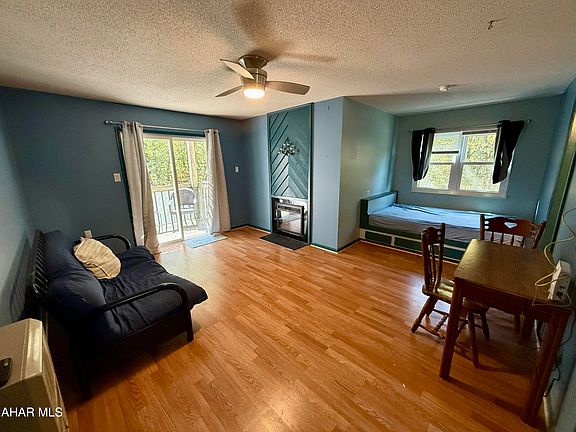 2nd floor studio in the Allegheny Mountains at Blue Knob All Seasons Resort. Updated electric fireplace, windows and sliding door, new tankless water heater.