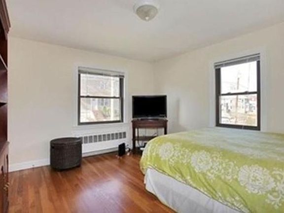 Top floor unit with lots of sunlight. Great layout with two well portioned bedrooms and one bathroom. Comes with two off street parking spaces. Washer and dryer in unit. Hardwood floors throughout. Tenant pays utilities. There's a great sun porch off the kitchen providing some outside living, and there's an attic for extra storage space. Owner is paying the full fee.