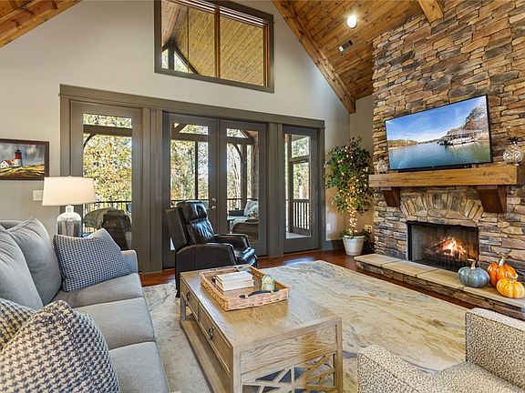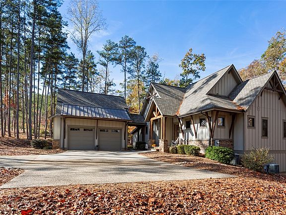 Welcome to 215 Elderberry Way, nestled in nature on the shores of Lake Keowee. For anyone unfamiliar, the gated neighborhood of Cottages at Riverbirch is truly a stand-out among Lake Keowee communities. The consistency of architecture throughout is both unique and impressive, with exposed pebblestone driveways and bronze roofing accents, highland slate shingles, board and batten cement fiberboard siding, post and beam details, flagstone porches, and stack stone accents. Designed by Acron Architects, this lakehouse affords a spacious 4 bedroom/ 3.5 bath floor plan ideal for those looking for luxury appointments carefully curated for style and function. Truly nestled in nature on over 1 acre of wooded surroundings, this home boasts everything needed for both full- and part-time living. The open floorplan with natural light and gorgeous tongue and groove ceilings brings the natural surroundings inside. Indoor and outdoor living spaces flow seamlessly to the screened porch with durable, maintenance-free TimberTech decking. The grill deck just off the kitchen is just one more example of the seamless flow between home and nature. Inside comforts include stainless steel appliances, striking granite countertops, custom cabinetry, wood beam ceiling accents, and a convenient walk-in pantry. The main level master bedroom offers wooded lake views and direct outside access. Additional main-level features offering style and function include a full-sized laundry room and half bath, which have direct access outside, as an area for wet bathing suits, towels or water gear allowing for true lake living. The home's lower level is just as accommodating as the main with 10-foot ceilings and 8-foot solid core doors. The wide stairway is filled with light as you enter the wood grain tiled living space complemented by three additional bedrooms and two full baths. Included in this is a second master suite with private bath, double sink granite vanity, true water closet, and walk-in shower. Outside, a terrace level patio is also highlighted with exposed pebblestone aggregate to match the front drive and a stone wood bin for firewood storage. A paved golfcart path on the gently sloped lot extends from the garage all the way to the shared covered dock, including water and power at the shore. (Right side slip when looking at the water). The two-car detached garage is fully finished with pull-down steps accessing a floored and lighted attic space. This home's special design will surely be appreciated by both residents and visitors alike, you will be glad you took this opportunity to make it yours.