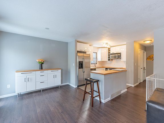 Welcome to Viking Village, a sought after neighborhood. Here is a move-in ready town home that is tastefully updated! Warm up to two wood-burning fireplace on each floor. You'll love the modern kitchen with butcher block counters, tile backsplash and updated kitchen. Relax on the deck, and enjoy the abundant natural light throughout the home, newer flooring and updated appliances, new AC, furnace and water softener & mechanicals. Bonus features are a two-car garage, a convenient location to trails, shopping, and more!