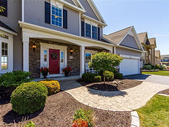 Welcome to this well maintained custom Alaimo Transitional Colonial nestled in the Legends West neighborhood in North Greece. The front porch and red door give this home an inviting curb appeal that your guests will envy! Inside you will find a functional floor plan, choosing a large gas fireplaced great room that is open to the eat-in-kitchen. This beautiful kitchen leads outdoors to an 1100 square foot stamped concrete patio for those who like to dine al fresco or sit around a fire pit. This flat yard is ideal for a pool. The front room is a dining room but also makes a great office! Upstairs you'll find a generous master suite with bath and walk-in closet. Three more bedrooms share a bathroom, neutral in decor. The BONUS- a 272 square foot additional room built over the garage to be used as a possible 5th bedroom, playroom, office, studio or exercise room! The basement is clean, dry and has legal egress so it is perfect for finishing. This home is also Energy Star Certified! Why build when this one is move in ready? Ready to show now! Please follow all Covid 19 Protocols with your agent. Thank you. 2020-07-04