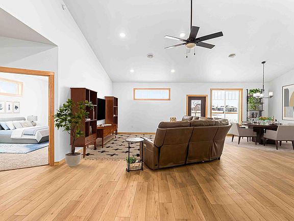 Welcome to your Fairway Vista! This stunning slab on grade home with premium golf course views, boasts an open floor plan with vaulted and tray ceilings which provide a spacious and airy ambiance. Relax and enjoy the quiet luxury lifestyle of the Mapleton Golf Course community located just minutes from West Fargo/Fargo. This home is just under 2000sq feet and offers 3 bedrooms and 2 bathrooms. It includes a luxurious master en-suite designed for comfort and style. The master bedroom features a tray ceiling, a generous walk-in closet, and a walk-in zero entrance tiled shower for a spa-like experience. The kitchen is a chef’s delight with quartz countertops and solid wood custom cabinets. Enjoy the durability and beauty of hard surface Coretec flooring throughout the home. Energy efficiency and comfort are prioritized with a gas furnace and Jeld-Wen Premium windows. The exterior showcases LP Smart siding, ensuring both durability and curb appeal. An oversized heated garage provides ample space for vehicles and storage. Outside, the sprinkler system will keep the landscaping lush and green. As part of a well-maintained HOA community, you’ll enjoy additional amenities and peace of mind. Don’t miss the opportunity to make this exceptional property your forever home!
