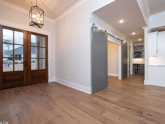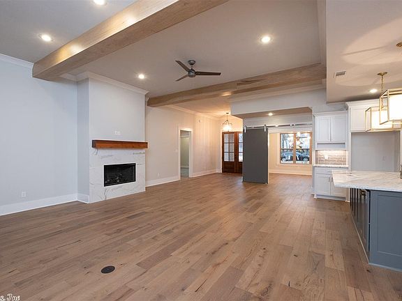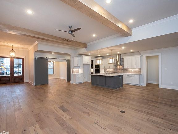 Beautiful home built by Mark Baker Custom Homes. 5 Bedroom 4 Bath with bonus room. Open floor plan with custom double barn doors into dining room. Chef's kitchen with walk-in pantry. Large custom ceiling beams and gas log fireplace in living room. The rear covered porch features a fireplace and stained wood porch ceilings. Flat lot with a yard and sprinkler system that backs up to gorgeous green space. 2 heating/air units, Energy efficient home with low-E glass and cellulose insulation.
