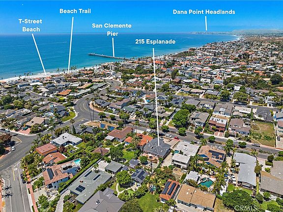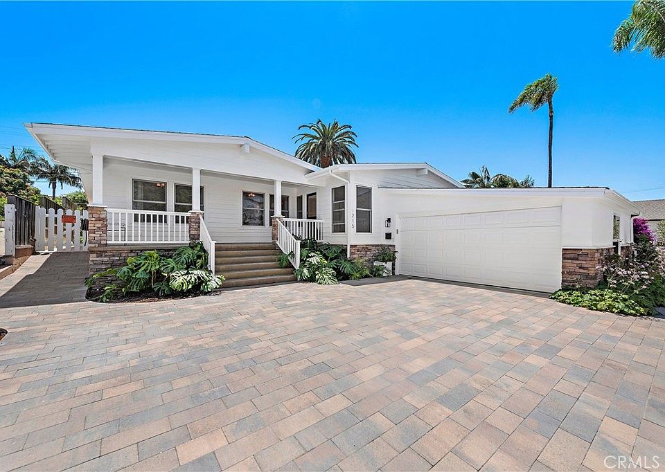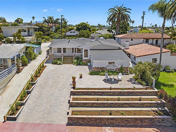 Uniquely capturing the essence of a quintessential coastal beach cottage and only steps to popular T-Street Beach, this stunning home represents the perfect idyllic seaside lifestyle! With the sand, one of the best local surfing spots and beach trail close by, this rare and oversized 10,500 sq ft lot sits in a highly sought-after location. Single level for easy living, 3 bedrooms and 3 bathrooms plus a detached office/art studio in the gorgeous backyard with limitless possibilities to make your own. Encompassing approximately 2,400 sq ft, this quaint residence maximizes an effortless flow with a spacious and airy open floorplan. Beautiful backyard views flourish through expansive windows and elegant French doors offering an abundance of natural light while a mid-century dual fireplace serves as an iconic focal point. A culinary masterpiece, the impeccably updated kitchen features a Thermador range, farmhouse sink in the large center island, and sleek quartz counters and backsplash. The impressive primary bedroom is beautifully appointed with a double door entry and a large walk-in closet while a romantic ambiance creates a haven of tranquility in the primary bath distinguished by a clawfoot tub and chandelier. One of the secondary bedrooms has an ensuite bathroom as well. A peaceful escape, the unique and welcoming backyard rewards residents with plentiful fruit trees, lush landscaping and pavers creating interesting designs. Exquisite curb appeal exudes from the terraced front yard and the quaint front porch is the perfect spot to enjoy the blissful ocean breeze. A prized location and an undeniably impressive coastal dream home by the beach! Easy freeway access, shops, restaurants, and more are all nearby!