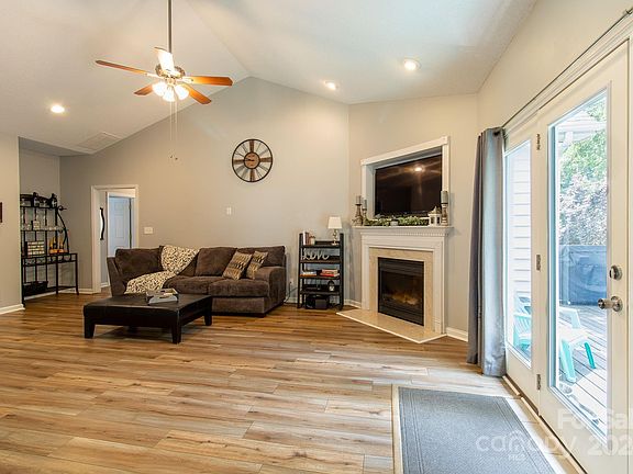 Welcome to 215 Everett Park Drive. Located in the Mooresville Graded Schools (MGSD). 4 mins from Downtown Mooresville with it's shopping, restaurants, breweries & Mooresville's wonderful Liberty Park. Easy-living one-level home Gas log fireplace. Vaulted ceilings. Spacious and open floor plan. New LVP flooring ( 2022). Roof just 2 years old (2022). The garage was up-fitted to a finished space in 2023 w/ Mini-Split HVAC /insulated garage door/Epoxy Floors… fantastic EXTRA space perfect ManCave/Gamer’s Room/Home Gym/Office/Playroom/Home Theater/Storage. Backyard is your own private park featuring privacy fencing, beautiful shade trees. Owners transformed this backyard in 2023 by "Forever Lawn" state-of-the-art “ K9 Turf” with an incredible stone border… perfect for pets and their humans to relax or play. This home has been loved and cared for and the pride in homeownership shines brightly.