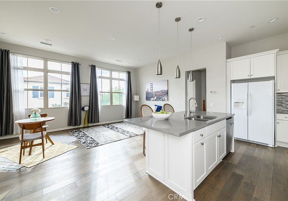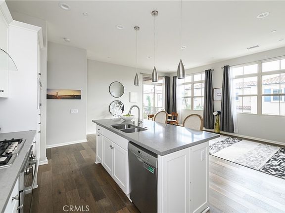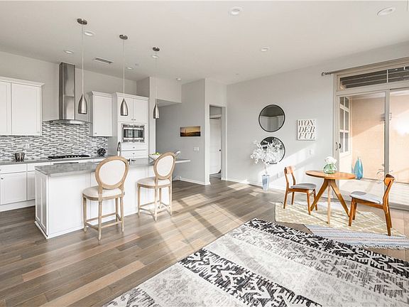 Located in the prestigious community of Portola Springs, this 2 bedrooms 2 baths transitional style open floor plan has wide plank hardwood floors,