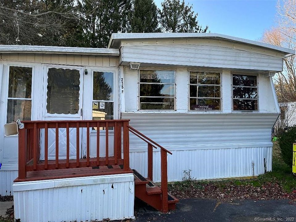 Mobile home located in mobile home park. Spacious bright living room with large windows! Large eat in kitchen with built ins. Newer refrigerator. Large primary bedroom with built ins with access to the bathroom. Second bedroom. Large bathroom features double sink, shower, toilet and bathtub. Newer roof. Outside deck near rear of home. Large covered porch near front entrance. Being sold "as is". Purchasers must be approved by park management. Includes washer and dryer.