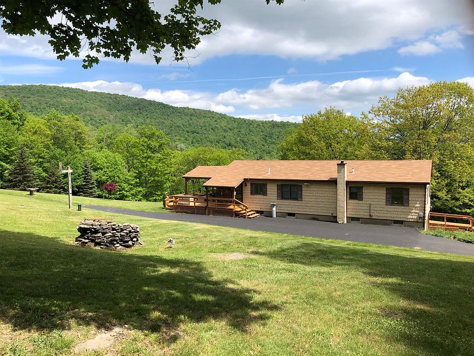 Neat as a Pin! Immaculate single family home (1539 square feet ) offer eat-in-kitchen, living room with woodstove, office (could be 4th bedroom), 3 bedrooms and 2 baths. Lower level (960 square feet) offers a man cave and a serious shop also 2 car garage and utility room.Separate detached garage for loads of additional storage. Open front deck and covered side porch. Fabulous blacktop drive! 15 acres of woodland and lawn adjacent to 235 acres of NYCDEP with hiking trails.