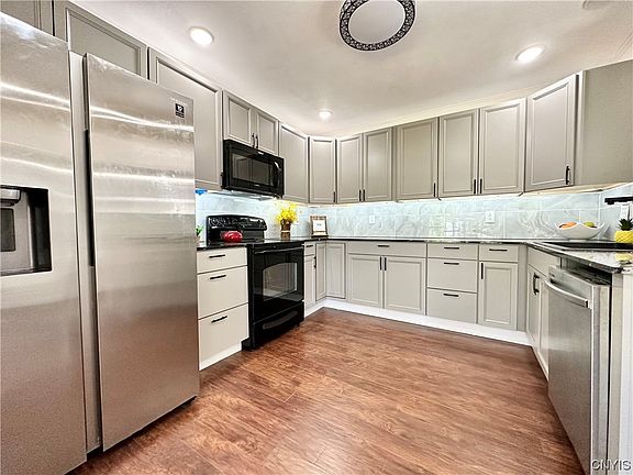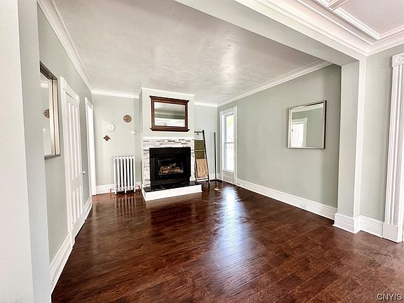 CITY STUNNER!!! Wait until you see the transformation on this gorgeous home located just blocks from Thompson Park, Samaritan Medical Center, Watertown public and parochial schools, and downtown shops and restaurants. Step onto the brand new covered front porch and you’ll see the beautiful natural stone surrounding the new entry door. Once you’re inside you’ll be wowed with the new flooring, refinished original woodwork and trim, and so much more. There are two living areas, one with a beautiful working gas fireplace. Formal dining room with tons of natural light. The new kitchen is a show stopper with the grey cabinets, granite countertops, new appliances, and awesome breakfast area that has a door to the back deck. The yard is fully fenced. Upstairs you’ll find two brand new bathrooms. One is a half bath with laundry, and the other one is an oversized full bath with dual sink vanity. Original hardwood floors upstairs in the three large bedrooms. Come see all this home has to offer! Just a short commute to Fort Drum and right around the corner from the hospital. Don’t wait!