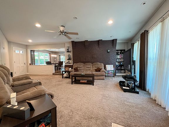 This sprawling brick ranch located near Beechwood Golf Course has 3 bedrooms, 2 1/2 bathrooms, and boasts plenty of square footage. Entering the home is a cozy family room that is open to the dining room. The kitchen features stainless steel counter tops, built in cabinets with frosted glass and lighting, and all appliances to stay. There is a large living room in the front of the home with large windows. The primary bedroom is a generous size and features an en-suite bathroom. 2 additional bedrooms and another full bathroom round out the main floor. The finished basement is large and lends itself to many uses. There is a large rec room with fireplace, and an additional room that is currently used as an office, but could be a great flex space. There are radiant heated floors throughout the home, as well as part of the garage. The garage has plenty of room for vehicles and storage, as well as a half bath. The backyard features a patio off of the dining room and a storage shed. This home also has brand new new roof, fascia, soffit, gutters and dishwasher. There is so much living space and an abundance of storage, don't miss this one! There is also a 3.5% assumable loan.