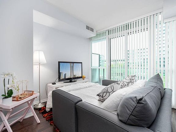 Furnished 1-Bed + Water/AC/Laundry/Balcony/Locker Included! Surrounded by a wide variety of restaurants, transit options, cafes, retail stores, and bars. Steps away from the Financial District, Entertainment District, Liberty Village, CNE, Lake Ontario, Toronto Public Library (Fort York Branch), Canoe Landing Park and Rogers Centre. Convenient access to Spadina, Bathurst & Queens Quay W streetcars, Union Station (Go & TTC), and Gardiner Expressway. Nearby: Strachan Ave & Lake Shore Blvd W Occupancy for the 550 sq-ft furnished 1-bed, 1-bath condo unit. Water included. Included modern appliances: fridge, dishwasher, stove, microwave, washer, and dryer. Central AC and heating. Private balcony. Building amenities include:fitness facility, visitors parking, yoga studio, swimming pool, movie room, elevator, concierge, guest room, BBQ, sauna and bike storage This property is under the Rental Assistance service by Tolobi, offering cost-effective tenant placement solutions for landlords and realtors in Canada. Ask us for more details!