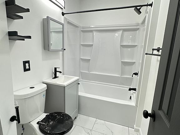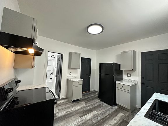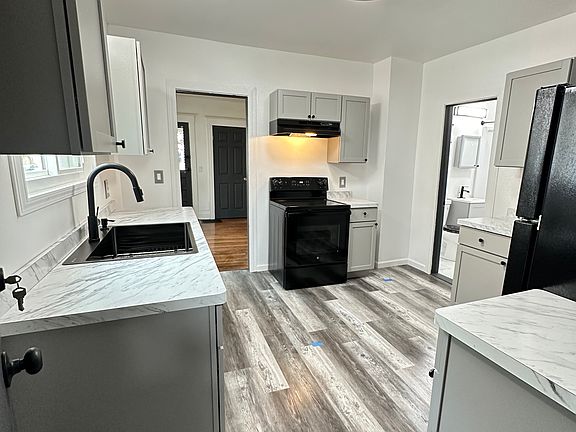 This Freshly Painted Unit contains a NEW Kitchen and Bathroom!! A fully reinvented Kitchen with new spacious cabinets and countertops, new black appliances and matte black finishes. The freshly tiled full bathroom with a NEW fiberglass tub kit, sink, toilet, and matte black finishes. Beautifully restored hardwood floors. The clean and well lit basement is equipped with washer and dryer hookups. This is an energy efficient unit with new vinyl windows, energy efficient appliances, and a new water heater. This unit has one off street parking spot in a shared driveway. Tenants are responsible for RG&E.