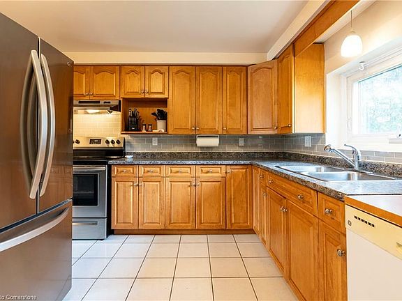 Private End Unit 2-Story Beautiful Townhouse located in a well maintained complex. Close to all amenities including grocery stores, shopping, schools, park and public transit system. This 3 bedroom, 2 full bath home is mostly carpet free {except the stairs}. It features a large family room with sliding doors to a fully fenced rear private backyard, family sized dining room plus an eat-in kitchen with solid oak cabinets. larger size bedrooms, updated fuse/breaker panel and newer washer and dryer. One exclusive parking spot & 2 additional parking passes for use of the visitor parking area which can be used for additional vehicles. Easy access for commuters to the 401, Highway 8 and RR#97. Book your private showing today!