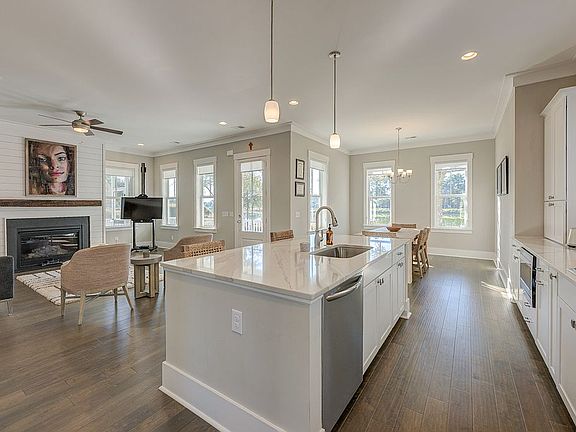Welcome home to 215 Great Heron Ct in Oldfield. Beautiful lake/park views throughout this move-in ready, immaculate corner lot 4BR/3.5BA home completed Sept 2019. Lighthouse award-winning plan. Modern kitchen w/ shaker cabinetry, quartz countertops, large center island, double oven, gas cooktop. Hardwood throughout - engineered on main level, hand-finished upstairs; tile in baths. Inviting screened porch with gas fireplace. Detached 2 car garage, spacious back/side yards, newly installed custom-designed landscaping, new perimeter fence. Why wait for a home to be built when you can move right in and start enjoying all Oldfield has to offer.
