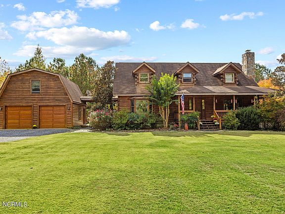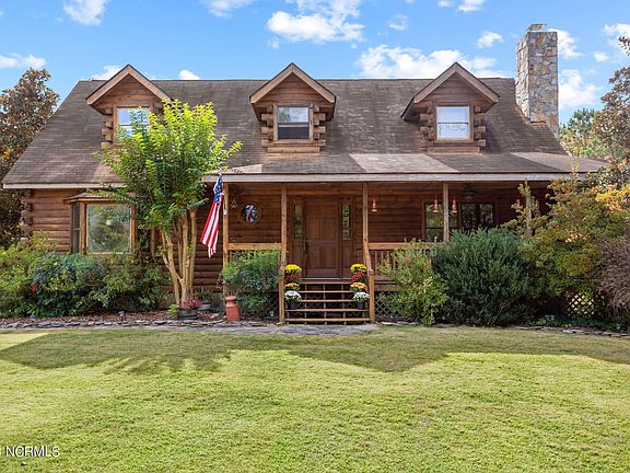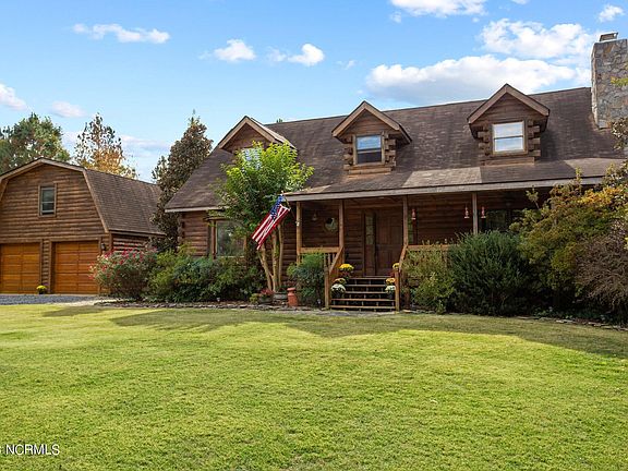 This stunning log home boasts 4 bedrooms, 3.5 baths, and a spacious living area featuring a charming stone wood-burning fireplace. The master suite is a retreat in itself, offering a relaxing clawfoot slipper tub, a separate shower, and two generous walk-in closets. The basement is perfect for family gatherings, with a cozy family room that includes a bar for entertaining and new LVP flooring! Additionally, there's a versatile adjoining space off the bedroom, ideal for an office or craft room. Above the two-car garage, you'll discover additional space that could easily be converted into an apartment or maintained as a gym, this is an additional 350ft2 of space that is not counted in the total heated square footage. Large outbuilding, 2 car garage, large pantry, and so much more! The property is adorned with mature landscaping and enjoys a private setting, providing breathtaking views of nature from every angle. Enjoy the serenity of the wrap-around porch or host guests on the spacious covered back deck, perfect for cookouts and outdoor entertaining. As you step out of the basement, a fantastic patio awaits, offering even more areas to entertain and unwind. This home is the one you've been dreaming of, so don't hesitate! Your slice of country paradise awaits.