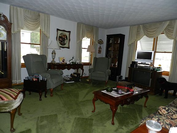 Spacious property! 3 BR home located on 1 +/- acre lot on outskirts of town offers large living area as well as spacious bedrooms. Covered porches on both front & back as well as a large yard that offers plenty of privacy. Room for your garden, playsets, pool, fire pit or anything else you dream of. The oversize heated garage offers 2 regular bays, work area, 1/2 bathroom and a small bay on the end that will hold your small car, toy, lawn tractor, atv and the list goes on. On the back side of the property behind a line of trees for privacy is a garden shed that is miniature replica of a barn with silo. So many great things this property has to offer.