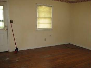 Exterior Features: Exterior: Home's exterior is in overall fair condition. Siding: Grayish beige in color with white trim, in fair condition. Windows: All intact. Soffits and Eaves: All intact. Patio/Porch: Front porch with concrete foundation, in fair condition. Roof: Metal type roof, looks to be in fair condition. Driveway: Gravel. Garage: One car detached garage. Lot: Home is on a sloped lot, looks to be maintained nicely. Interior Features: Interior: Home's interior is in overall fair condition with no major defects. Living Room: Room has wood flooring with light tan walls and white trim, all in fair condition. Dining Room: Styled same as the living room. Kitchen: Flooring and walls styled same as living room, complete with cabinets, counter-tops, and sink. Bathroom: Half bath has just a toilet and sink, walls are wood panel, flooring is linoleum. Full bath is complete with sink, toilet and tub, floors are linoleum and walls are tan. Bedroom: (1) Light blue walls with wood trim and gray carpeting. (2) Tan walls with wood trim and wood flooring. Basement: None. Mechanics: Hot water heater intact, all others are unknown.